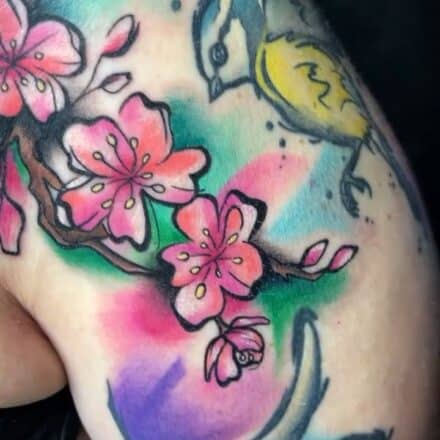 Tetování květiny, sakury na rameni