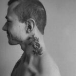 Tetování květiny se znakem a symbolem Jin s Jang na krk
