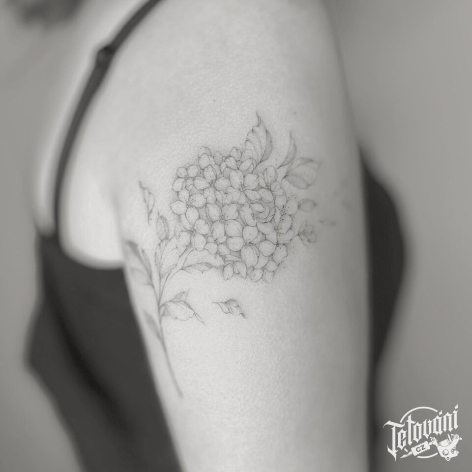 Tetování květiny, šeřík na paži