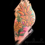 Tetování květiny, slunečnice na boku stehna