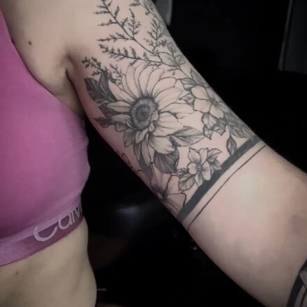 Tetování květiny, slunečnice na předloktí