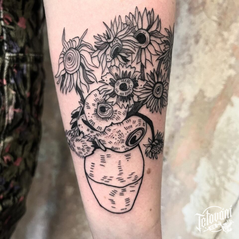 Tetování květiny slunečnice na předloktí