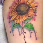 Tetování květiny, slunečnice na stehně