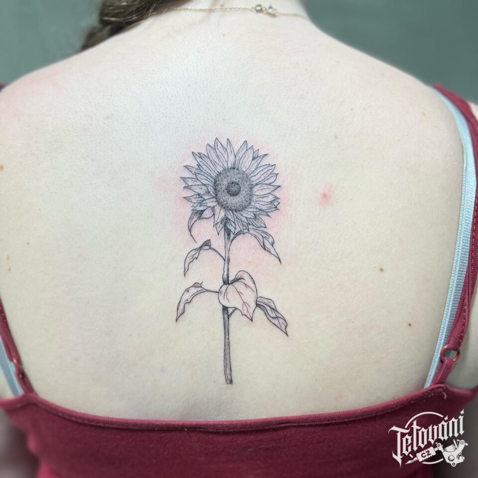 Tetování květiny, slunečnice na zádech