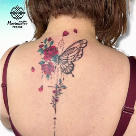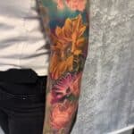 Tetování květiny, slunečnice, sakura a růže na rukávu