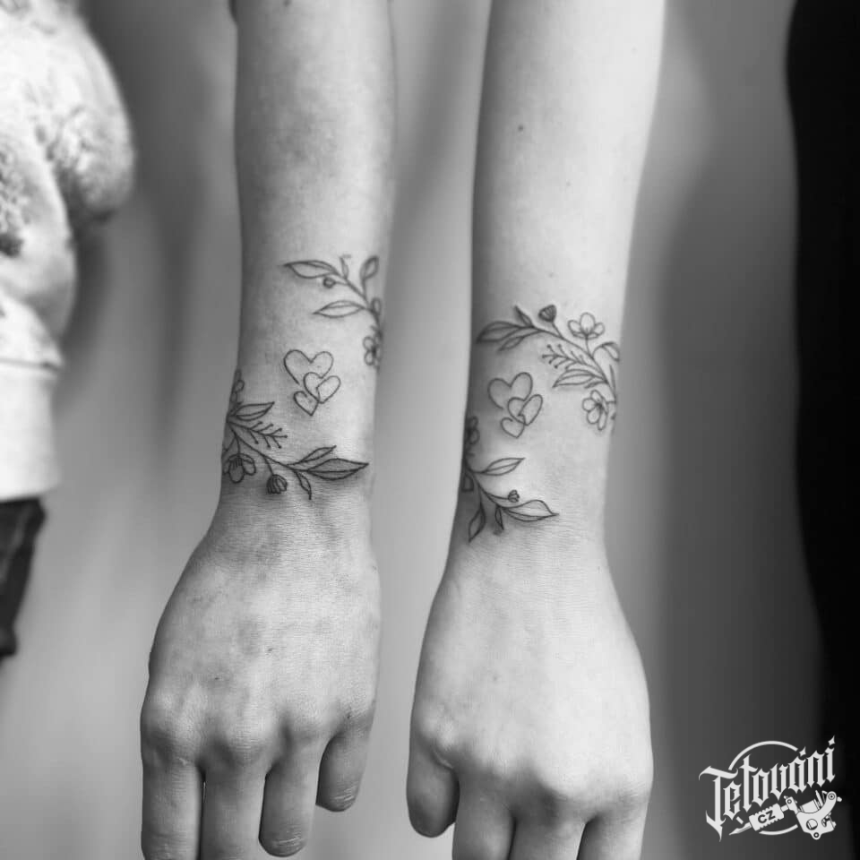 Tetování květiny, společná tetování pro kamarádky na předloktí