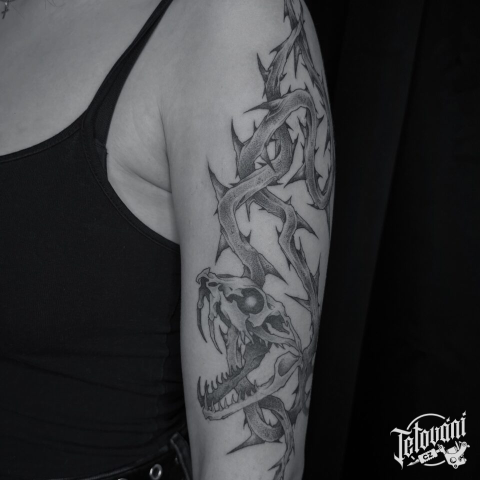 Tetování květiny, trní na paži