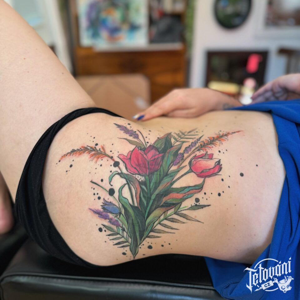 Tetování květiny, tulipán na bok