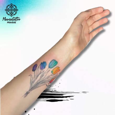 Tetování květiny tulipán na předloktí