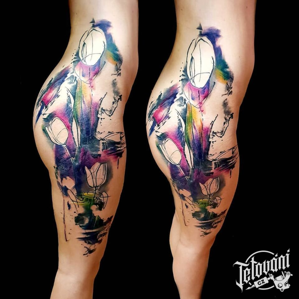 Tetování květiny tulipány na boku