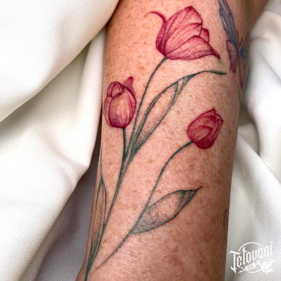 Tetování květiny, tulipány na předloktí