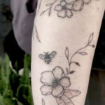 Tetování květiny, včela, motýl na předloktí