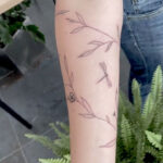 Tetování květiny, větvičky, vážky na předloktí