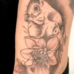 Tetování květiny, veverka na ruku