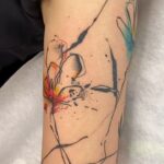 Tetování květiny, vlčí mák a kopretina, čáry na rameno