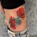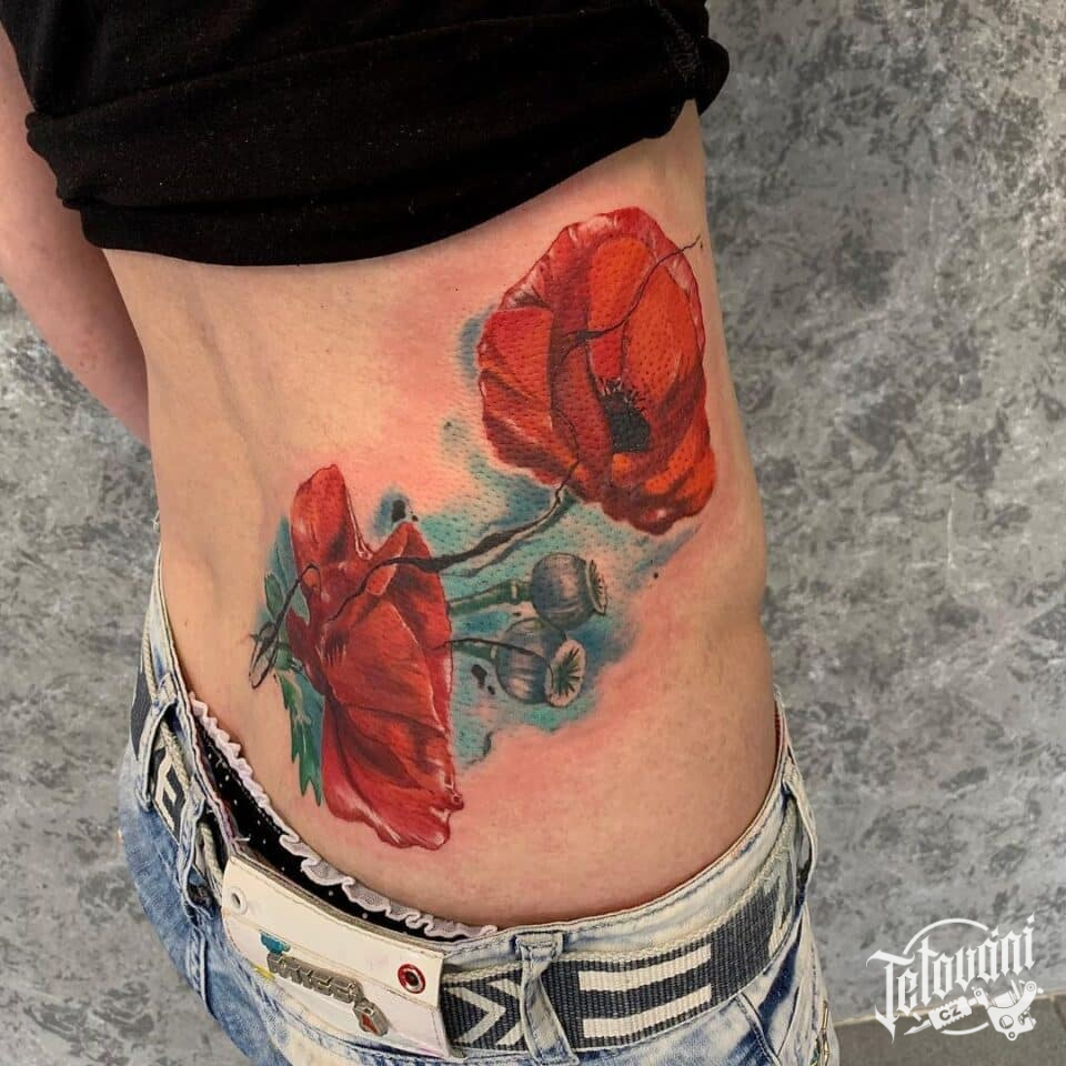 Tetování květiny, vlčí mák na boku