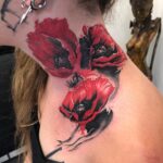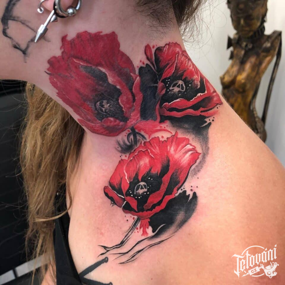Tetování květiny, vlčí mák na krku