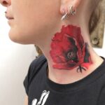 Tetování květiny, vlčí mák na krku