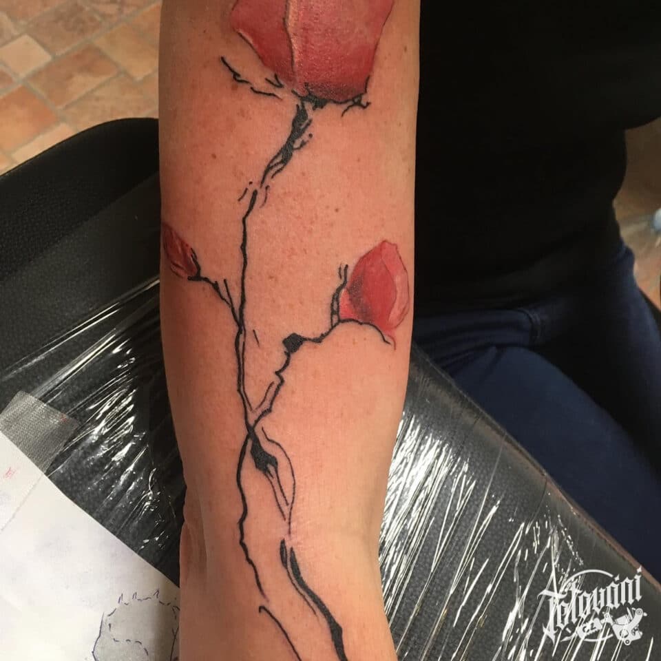 Tetování květiny, vlčí mák na rameno