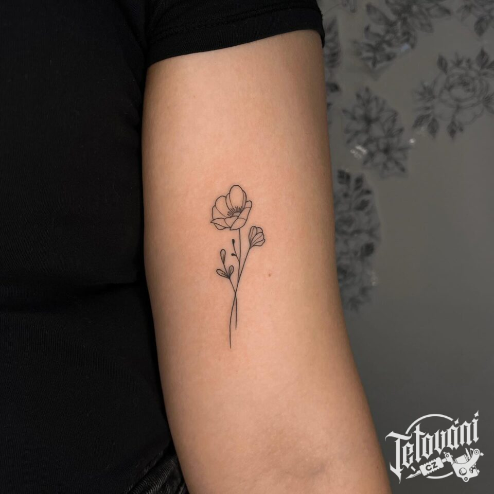 Tetování květiny, vlčí mák na rameno