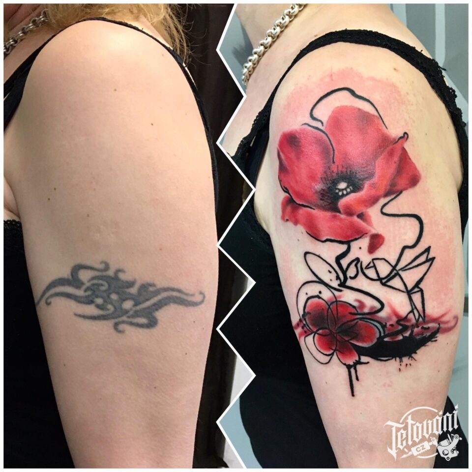 Tetování květiny, vlčí mák na rameno