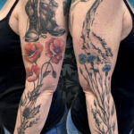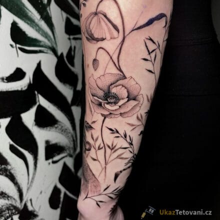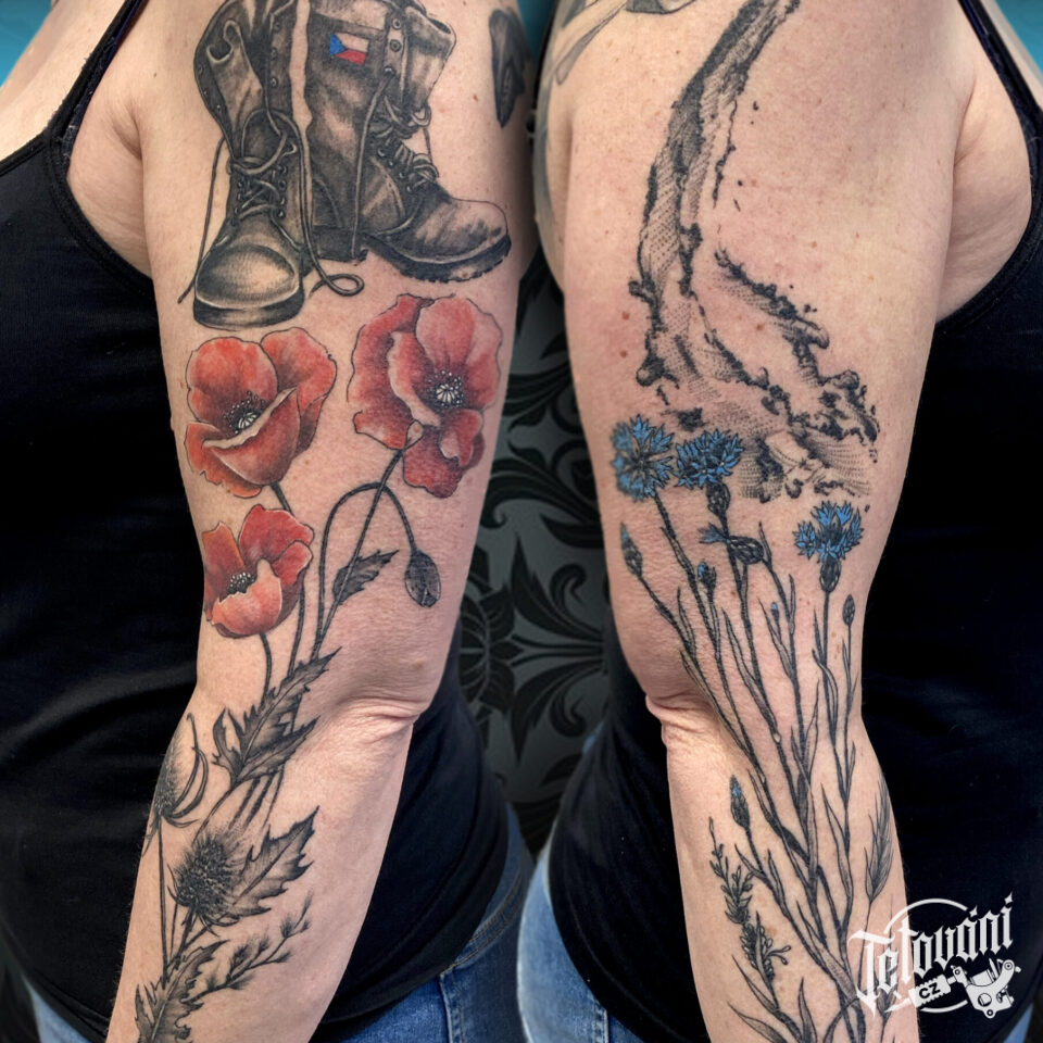 Tetování květiny, vlčí mák, předměty, boty, rukáv