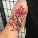 Tetování květiny, vlčí mák, zvíře kudlanka na rameno
