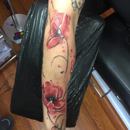 Tetování květiny, vlčí máky n rameni