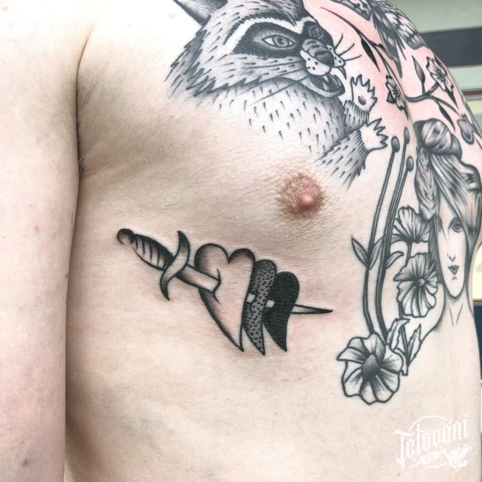 Tetování květiny, zvířata mýval, portrét, žena, srdce na hrudník