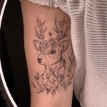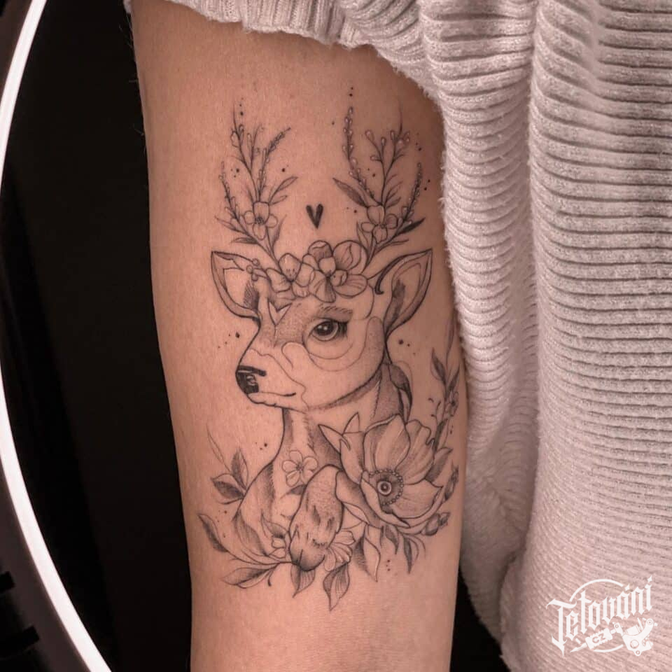 Tetování květiny, zvíře Jelen na paži
