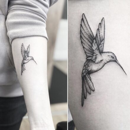 Tetování květiny, zvíře, kolibřík na boku stehna