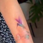 Tetování květiny, zvíře kolibřík na předloktí