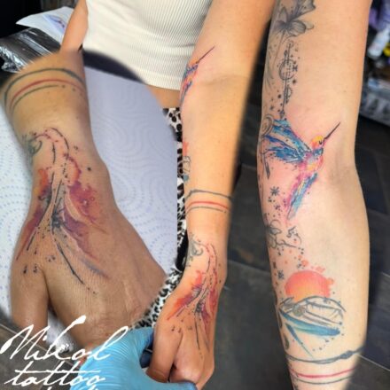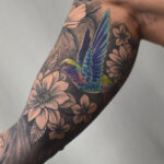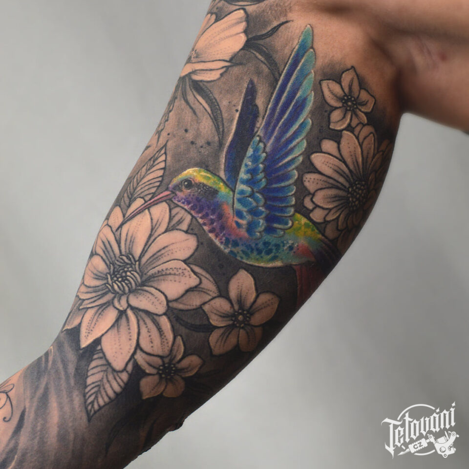 Tetování květiny, zvíře kolibřík na ruku
