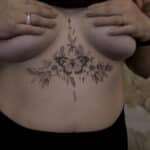 Tetování květiny, zvíře, motýl mezi prsa