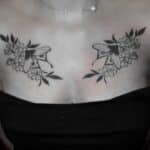 Tetování květiny, zvíře můra pod klíční kosti