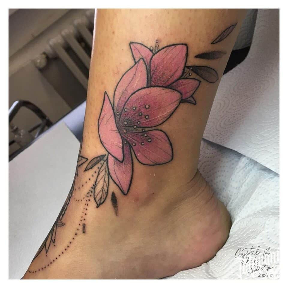Tetování květy Lilie na kotník