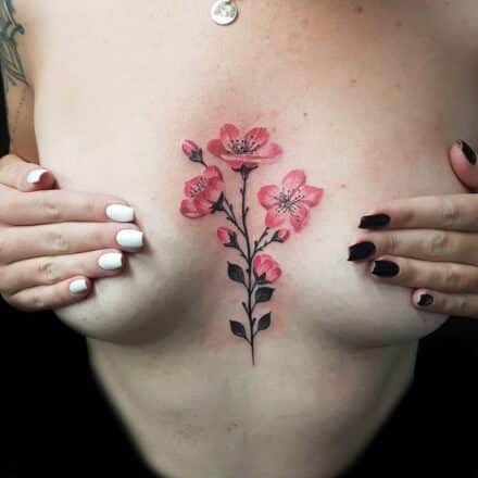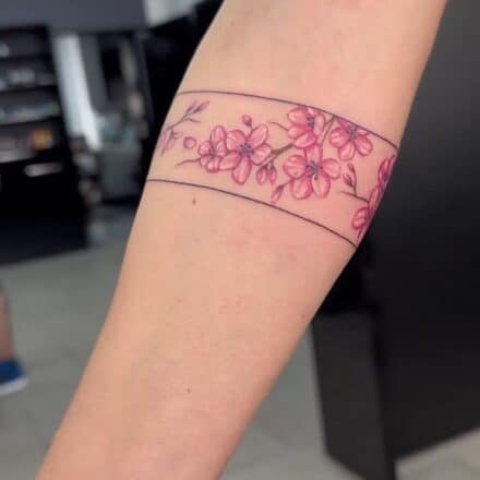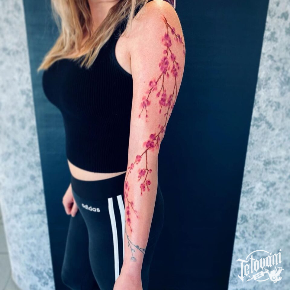 Tetování květy sakury, větvička, strom, symbol na rameno a předloktí