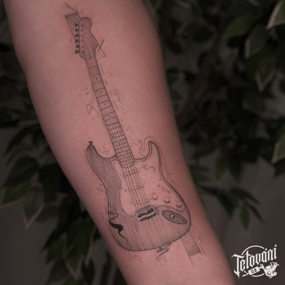 Tetování kytara, hudba na...