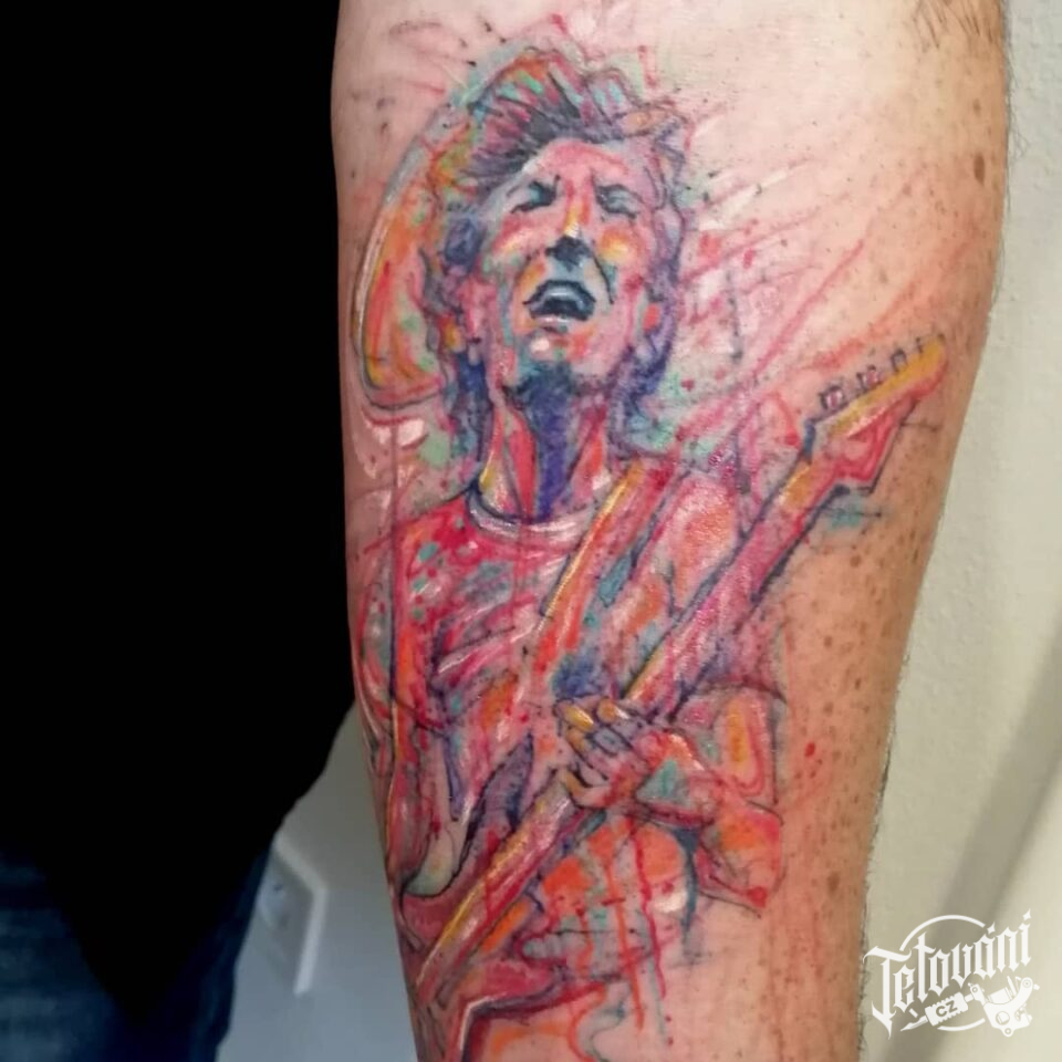 Tetování kytarista na ruku