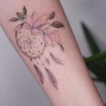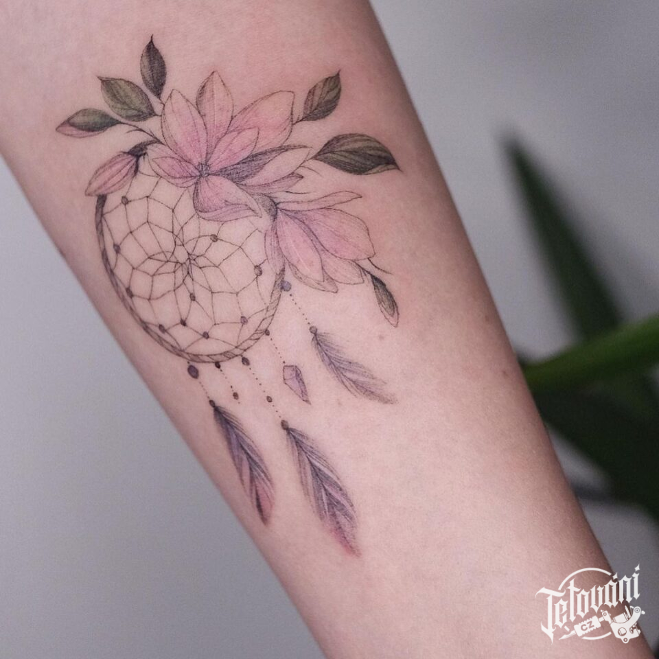 Tetování lapač snů, květiny na předloktí