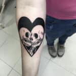 Tetování láska, lebky v srdci na předloktí