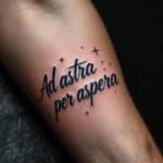 Tetování latinský citát s hvězdičkami na předloktí