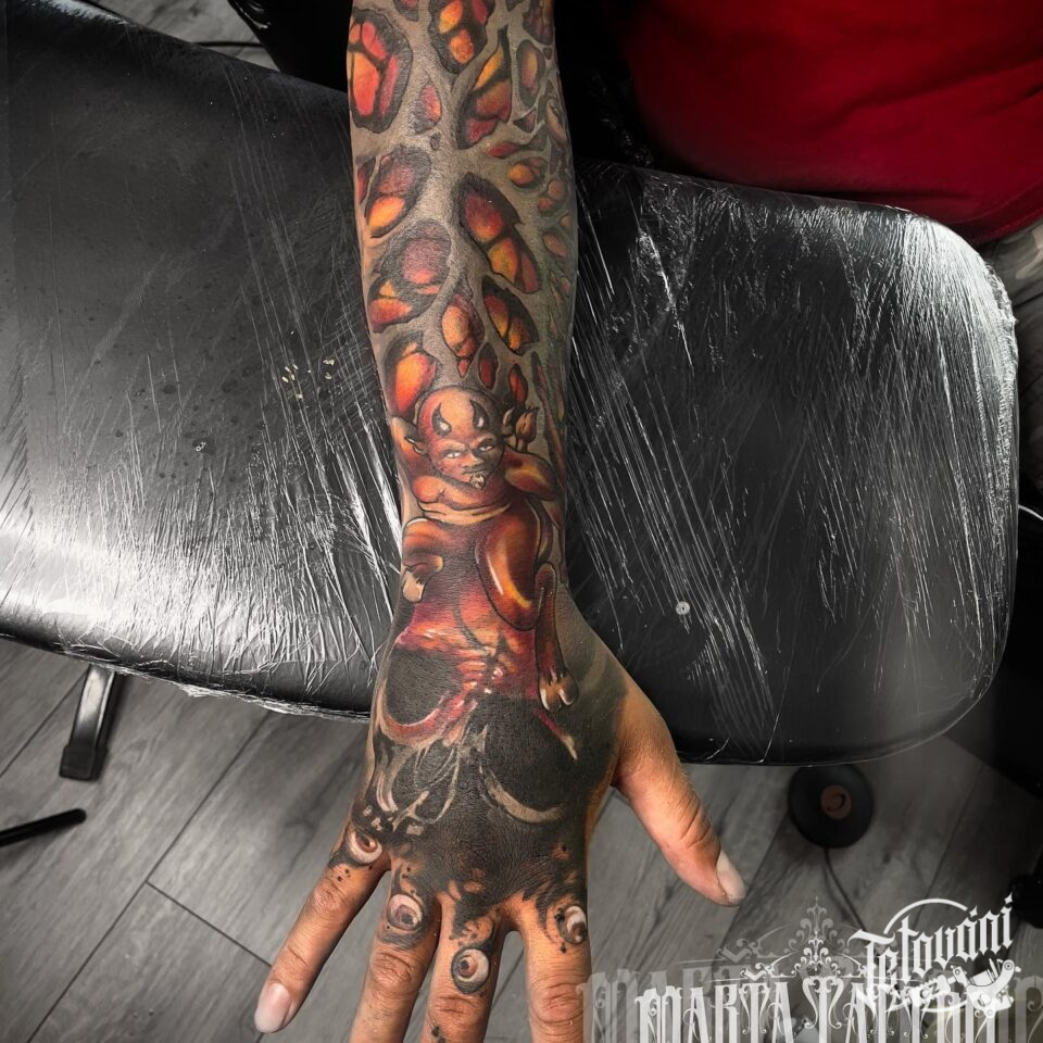 Tetování lebka a ďábel na předloktí