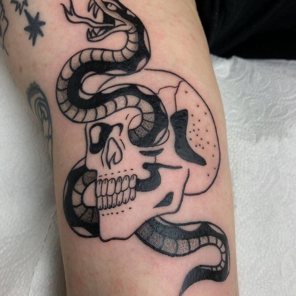 Tetování lebka a had na ruce