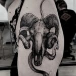 Tetování lebka a had na stehně