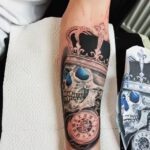 Tetování lebka a hodiny, koruna na předloktí