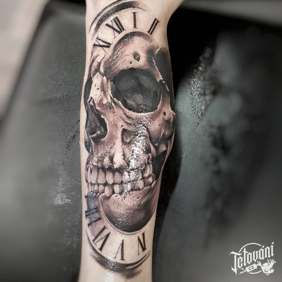 Tetování lebka a hodiny n...