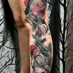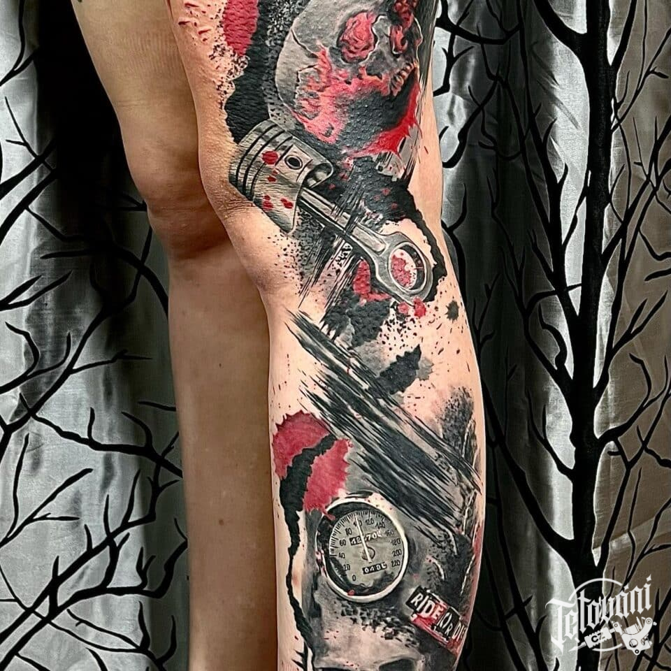 Tetování lebka a hodiny na nohu