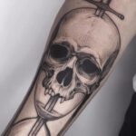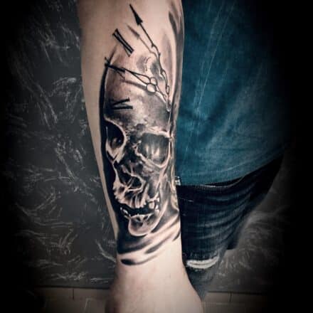 Tetování lebka a hodiny na předloktí