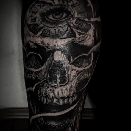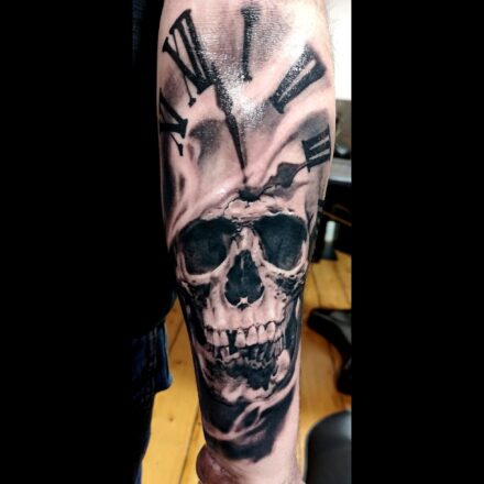Tetování lebka a hodiny n...